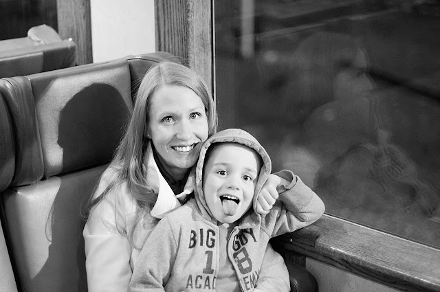 SO, on christmas eve we decided to go on the polar express. after an hours drive, we arrived to the train. wes was the most excited about riding the train only because he doesn't think he's been on one before. he doesn't remember the many trips we took on subways and trains while living on the east coast.